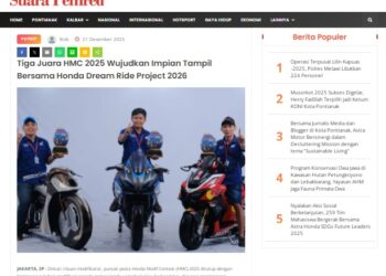 Jemput Kendala di Mana Saja, Layanan Honda Care Astra Motor Kalbar Diapresiasi Konsumen Loyal 21 Desember 2025 by masmul Read More