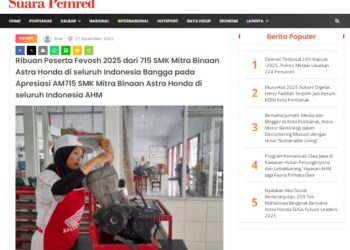Ribuan Peserta Fevosh 2025 dari 715 SMK Mitra Binaan Astra Honda di seluruh Indonesia Bangga pada Apresiasi AM715 SMK Mitra Binaan Astra Honda di seluruh Indonesia AHM 21 Desember 2025 by masmul Read More
