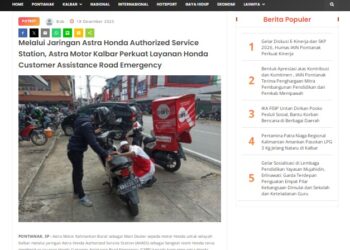 Melalui Jaringan Astra Honda Authorized Service Station, Astra Motor Kalbar Perkuat Layanan Honda Customer Assistance Road Emergency 18 Desember 2025 by masmul Read More