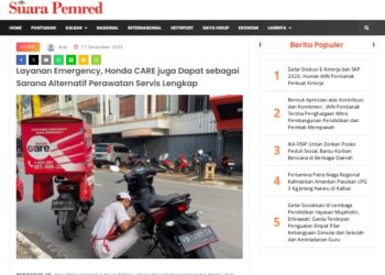 Honda CARE Astra Motor Kalbar Berikan Layanan Terbaik Lewat Kerja Cekatan Teknisi AHASS 17 Desember 2025 by masmul Read More