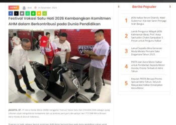 Dilengkapi Semua Fasilitas Layanan Terbaik, Gedung Baru Main Dealer Astra Motor Kalbar Wujudkan Mimpi Konsumen Loyal 14 Desember 2025 by masmul Read More