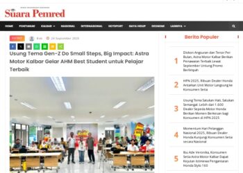 Usung Tema Gen-Z Do Small Steps, Big Impact: Astra Motor Kalbar Gelar AHM Best Student untuk Pelajar Terbaik 24 September 2025 by masmul Read More