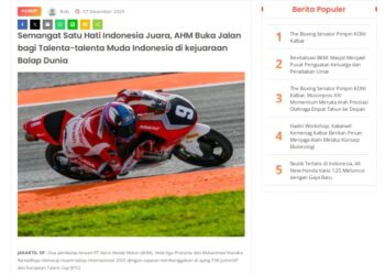 Semangat Satu Hati Indonesia Juara, AHM Buka Jalan bagi Talenta-talenta Muda Indonesia di kejuaraan Balap Dunia 7 Desember 2025 by masmul Read More