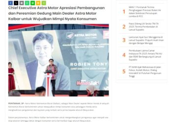 Chief Executive Astra Motor Apresiasi Pembangunan dan Peresmian Gedung Main Dealer Astra Motor Kalbar untuk Wujudkan Mimpi Nyata Konsumen 4 Oktober 2025 by masmul Read More