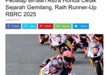 Pebalap Binaan Astra Honda Cetak Sejarah Gemilang, Raih Runner-Up RBRC 2025 27 September 2025 by Nova Sari Read More